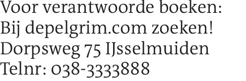 Voor verantwoorde boeken: Bij depelgrim.com zoeken! Dorpsweg 75 IJsselmuiden Telnr: 038-3333888Contact