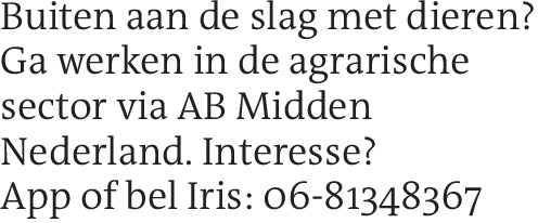 Buiten aan de slag met dieren? Ga werken in de agrarische sector via AB Midden Nederland. Interesse? App of bel Iris: 06-81348367Contact