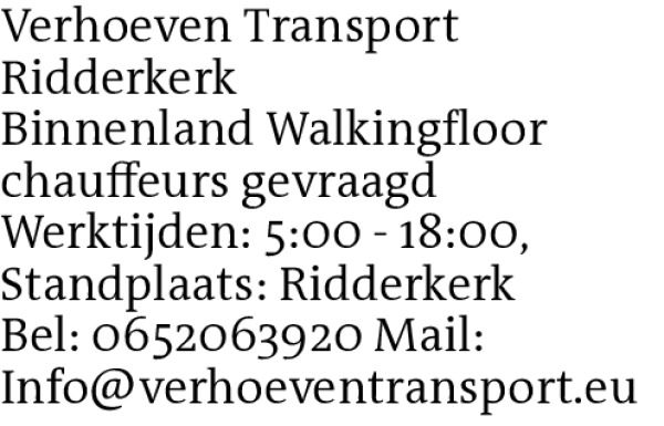 Verhoeven Transport RidderkerkBinnenland Walkingfloor chauffeurs gevraagd