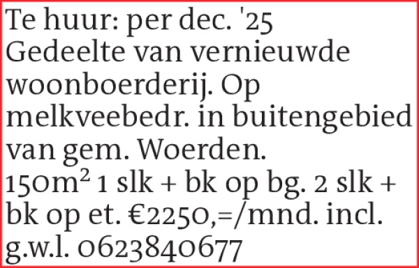 Te huur: per dec. '25Gedeelte van vernieuwde woonboerderij. Op melkveebedr. in buitengebied van gem. Woerden.