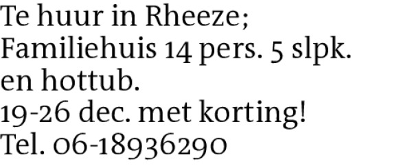 Te huur in Rheeze; Familiehuis 14 pers. 5 slpk.en hottub.