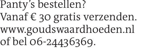Panty’s bestellen? Vanaf € 30 gratis verzenden. www.goudswaardhoeden.nl of bel 06-24436369.