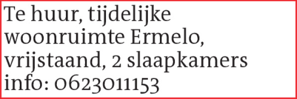 Publicatiedatum: Advertenties van 19.12.2025 in rubriek "Te huur"