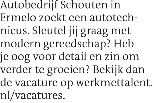 Autobedrijf Schouten in Ermelo zoekt een autotechnicus. Sleutel jij graag met modern gereedschap? Heb je oog voor detail en zin om verder te groeien? Bekijk dan de vacature op werkmettalent.nl/vacatures.Contact