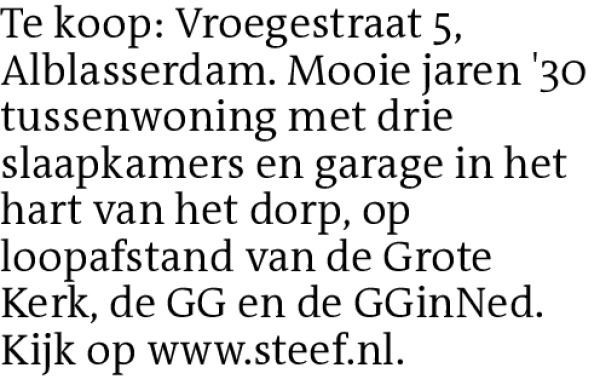 Te koop: Vroegestraat 5, Alblasserdam. Mooie jaren '30 tussenwoning met drie slaapkamers en garage in het hart van het dorp, op loopafstand van de Grote Kerk, de GG en de GGinNed. Kijk op www.steef.nl.Contact