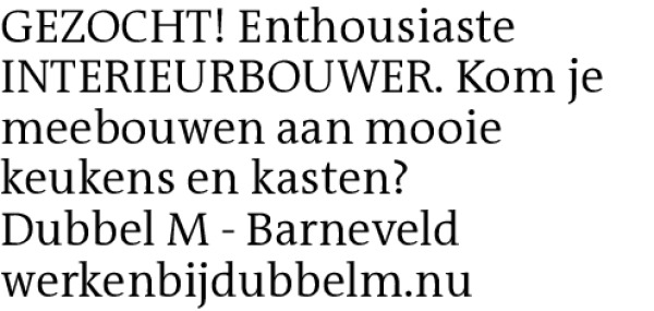 GEZOCHT! Enthousiaste INTERIEURBOUWER. Kom je meebouwen aan mooie keukens en kasten?Dubbel M - Barneveld werkenbijdubbelm.nu