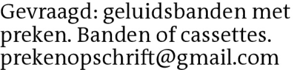 Gevraagd: geluidsbanden met preken. Banden of cassettes. prekenopschrift@gmail.comContact