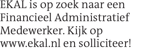 EKAL is op zoek naar een Financieel Administratief Medewerker. Kijk op www.ekal.nl en solliciteer!