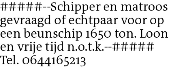 #####--Schipper en matroos gevraagd of echtpaar voor op een beunschip 1650 ton. Loon en vrije tijd n.o.t.k.--#####Tel. 0644165213