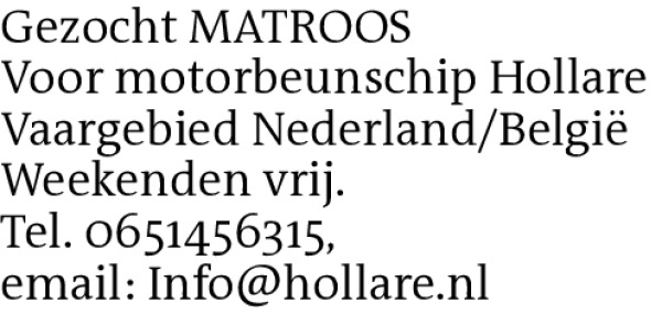Gezocht MATROOSVoor motorbeunschip Hollare