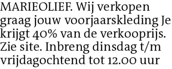 MARIEOLIEF. Wij verkopen graag jouw voorjaarskleding Je krijgt 40% van de verkooprijs. Zie site. Inbreng dinsdag t/m vrijdagochtend tot 12.00 uurMeer advertenties van de provider
