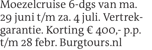 Moezelcruise 6-dgs van ma. 29 juni t/m za. 4 juli. Vertrekgarantie. Korting € 400,- p.p. t/m 28 febr. Burgtours.nl