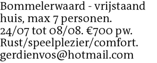 Advertenties van 27.3.2026 in rubriek "Vakantie binnenland "