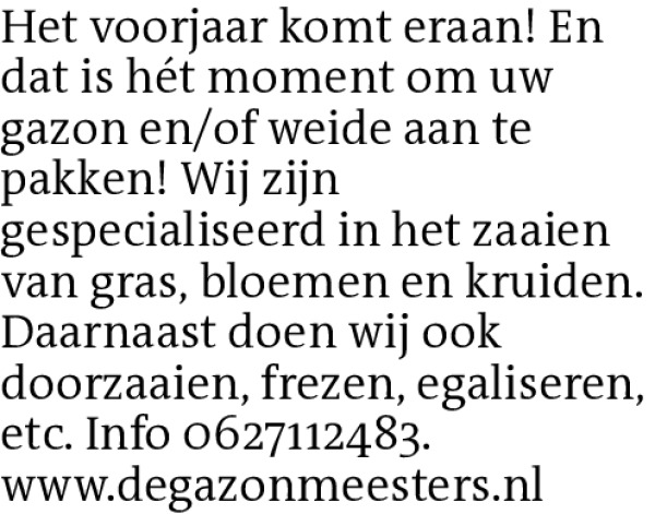 Het voorjaar komt eraan! En dat is hét moment om uw gazon en/of weide aan te pakken! Wij zijn gespecialiseerd in het zaaien van gras, bloemen en kruiden. Daarnaast doen wij ook doorzaaien, frezen, egaliseren, etc. Info 0627112483.www.degazonmeesters.nl