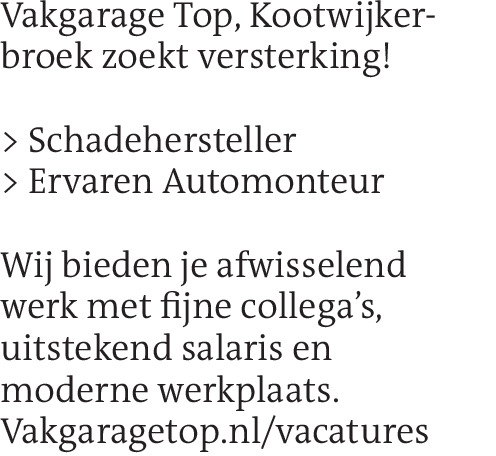 Vakgarage Top, Kootwijkerbroek zoekt versterking! > Schadehersteller > Ervaren Automonteur Wij bieden je afwisselend werk met fijne collega’s, uitstekend salaris en moderne werkplaats. Vakgaragetop.nl/vacatures