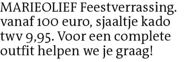 MARIEOLIEF Feestverrassing. vanaf 100 euro, sjaaltje kado twv 9,95. Voor een complete outfit helpen we je graag!