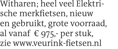 Witharen; heel veel Elektrische merkfietsen, nieuw en gebruikt, grote voorraad, al vanaf 975,- per stuk, zie www.veurink-fietsen.nlContact