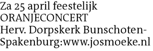 Za 25 april feestelijk ORANJECONCERTHerv. Dorpskerk Bunschoten-Spakenburg:www.josmoeke.nl